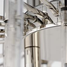 The composition of Clear glass rods are elegantly supported by thin radial arms of staggered lengths to create an iridescent motif that is truly Divine. Finished in Polished Nickel or Heritage Brass, the simplicity of this design delivers a crisp lighting